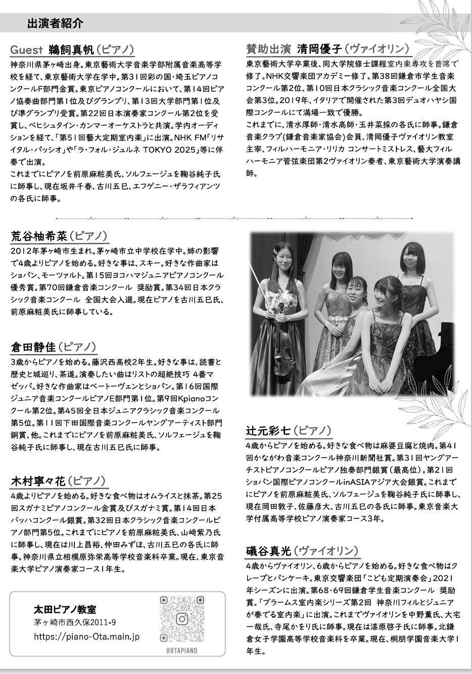 太田ピアノ教室出身者によるコンサート「若き響・第1回きらめく音の芽たち」《2025.8.21》は、